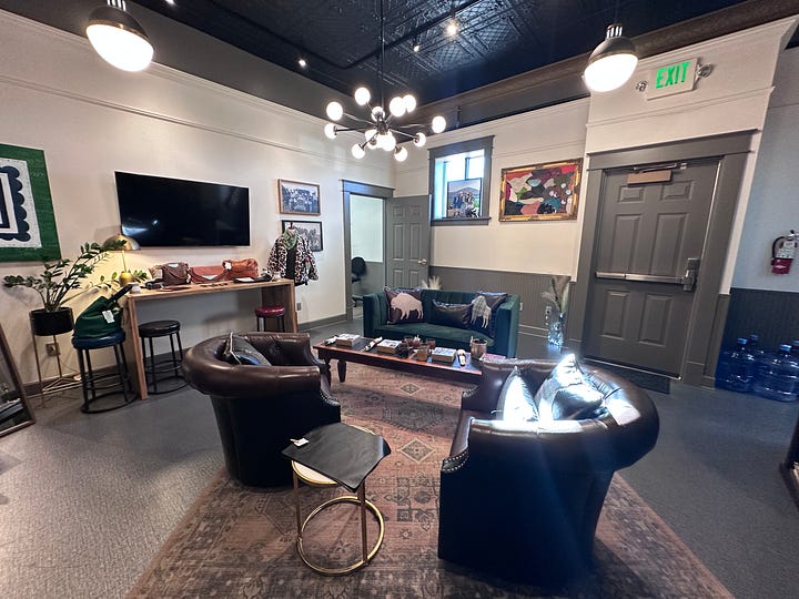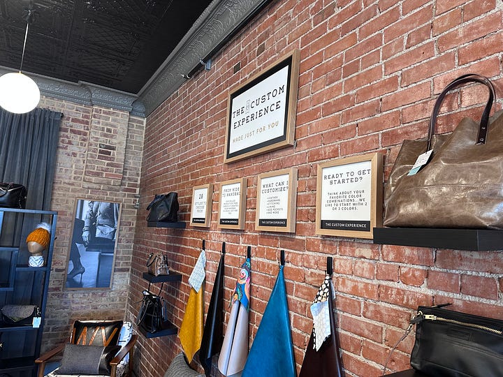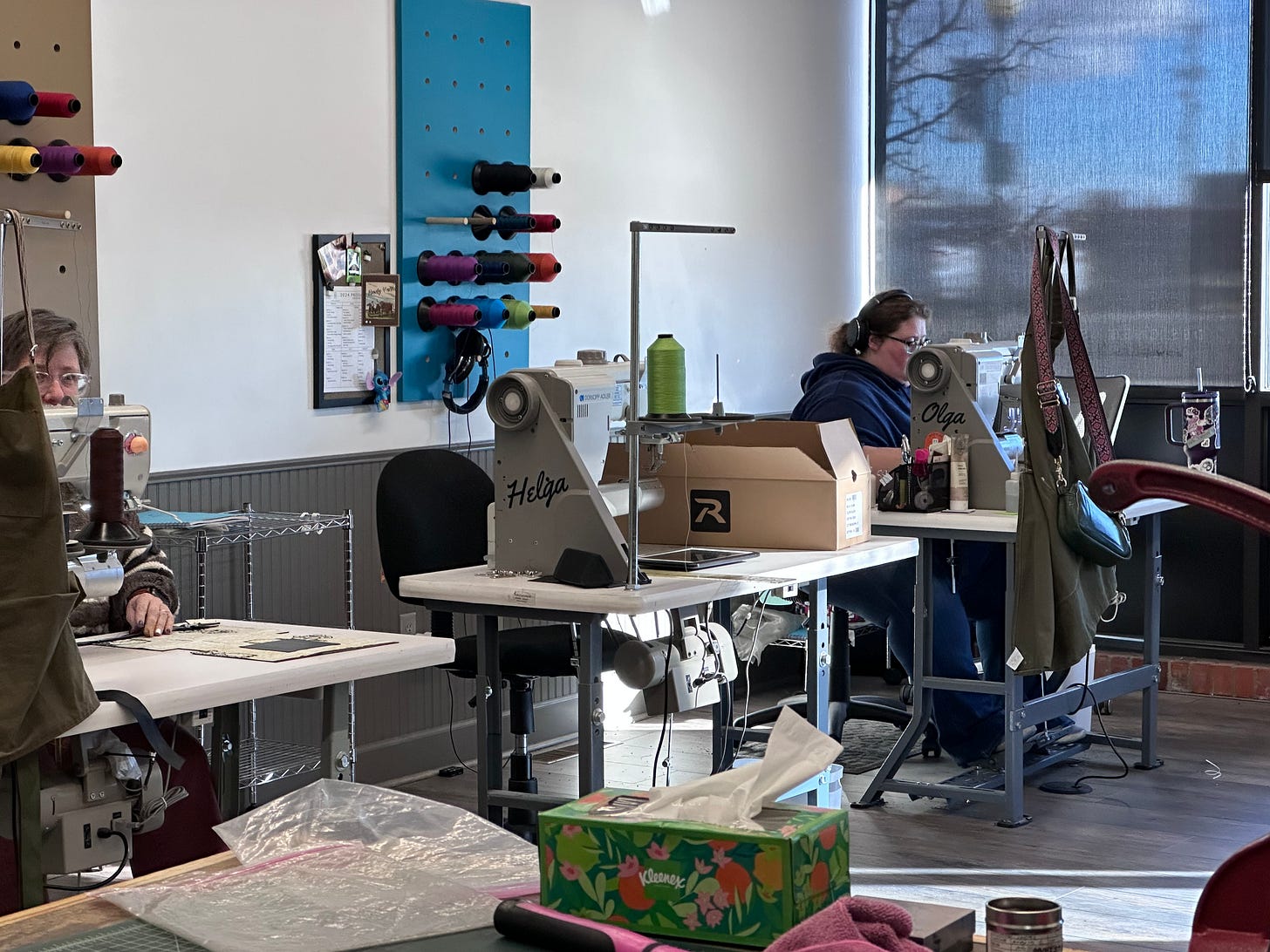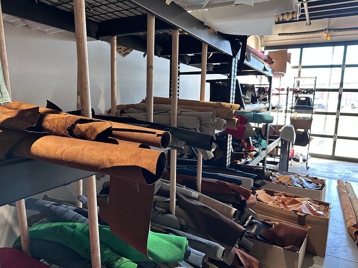 We walked around the corner to another room where several women were at sewing machines, working on handbags. It was so refreshing to see people actually making something in their hometown. I probably am too sentimental about what it means, but a great country makes things. In our era of maximum efficiency, corporations and brands have chased the highest margins, and most of the time that means that their goods are made somewhere else, by people who are much less expensive than American labor. So to walk in and see people from Chyenne actually working on the bags that would be sold in their retail store or online was something special.