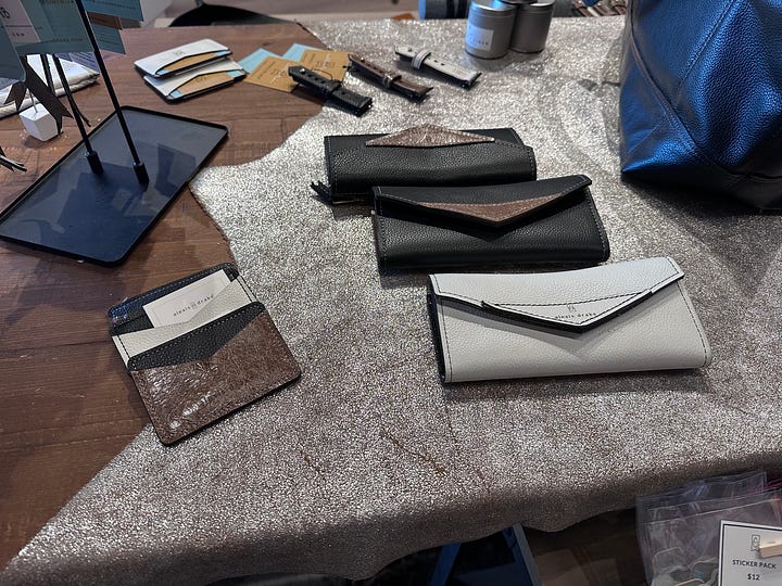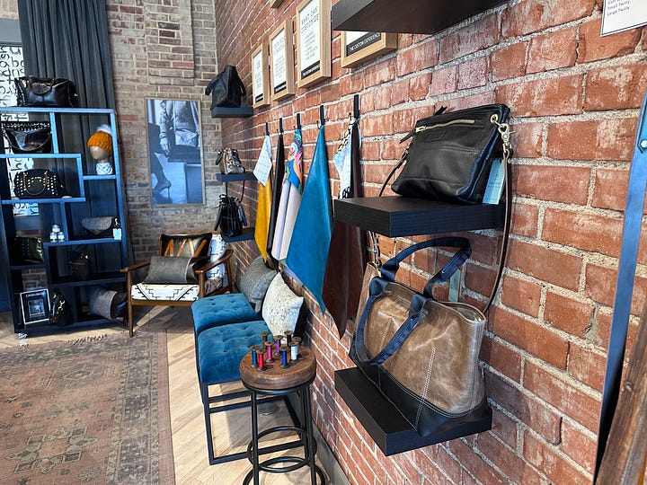 I am in the mood these days for beautiful things. There are so many troubles in our world, so when someone is doing something that they love, and they are making incredible products, they should be celebrated. As I walked around the store, I couldn’t help but smile. There are still stories in America where people are rising above the din of mediocrity and adding to our collective American heritage of making the best things. We lose something when we trade away our heritage for something cheaper. Our communities suffer, our ethos fades, and our quality of life is diminished. The handbags that Alexis Drake offers will never match the price of an imitation-leather bag from Walmart, but what we save on the reduced price has a cost somewhere else. Perhaps we don’t see it immediately, but over time, the dollars we exchange from our communities into the hands of conglomerates wear our spirits down. It is invigorating to walk into Alexis Drake. Something from an older era is happening there. People are making beautiful things and, in that act, are offering a different version of capitalism. One, I might add, that is much more appealing. Every dollar someone spends on a handbag, purse, or wallet at Alexis Drake stays in Cheyenne. It goes to her employees, her building rents, and her marketing agency, and instead of just one person benefiting from a good idea, the circle of beneficiaries could easily grow to hundreds from her own hometown.