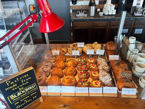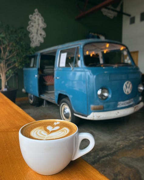 The roaster that came up to the top of the list, no matter where I searched, was Harriet and Oak. It was within walking distance of our house, and they roasted their own beans. So it looked to be the best choice from all points of view. The first morning of the meet, I walked over and was completely pleased with my choice. The atmosphere is fantastic. The shop sits in a renovated building that was an old car dealership building right on the main street coming into Rapid City. There was a line, an always-affirming sign, and the energy within the shop was wonderful. There was an upstairs that overlooked the main floor, and inside, there was an old VW Van placed as their mascot. The menu was more prolific than I thought, and the selection of baked goods was rather exceptional, too.